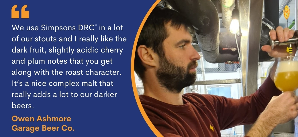 I’ll have to give two. The first one is going to have to be Golden Promise because of what it does in our beers like Soup. In a 6% IPA, Golden Promise helps to give that perfect balance between sufficient malt character and a slight biscuity flavour, while not interfering with the hop character. It sits nicely in balance and harmony in an IPA of that strength. The second one, which I’ve started working with more so since I’ve been here, is DRC. We use it in a lot of our stouts and I really like the dark fruit, slightly acidic cherry and plum notes that you get with roast character. It’s a nice complex malt that adds a lot to our darker beers.
